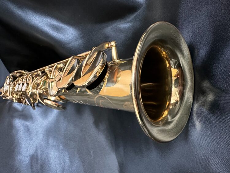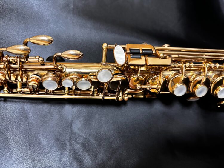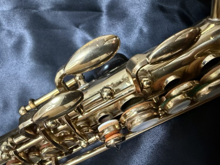 フランス、セルマー社のビンテージソプラノサックス「マークⅥ」ゴールラッカーです。シリアルは30万番台とマークⅥシリーズでは後期モデルです。マークⅥらしい、倍音が豊富で、低音から高音まで綺麗に響きます。特にオクターブ上のG♯からFあたりまでの高音は抜けが良く、ピッチも安定しています。外観は時間と使用に伴うラッカーの剥離がありますが、タンポやキーなど各パーツのコンディションは数年前に都内の有名管楽器店のソプラノやソプラニーノを得意とする著名なリペアマンがオーバーホールをし、それ以降も継続的に調整しておりコンディションは問題ありません。、セルマービンテージしかもソプラノは市場でも少なく、奇跡的に当店にあります。再び、マークⅥのブームが来ており、価格も高騰しつつある中ですが長らくお探しのお客さまには納得の商品として販売させていただきます。販売価格や仕様については当店の販売サイトをご覧ください。   また、購入までは決めていないが、相談だけでも構いませんので、お気軽にサイトの問合せページへご連絡をお願い致します。